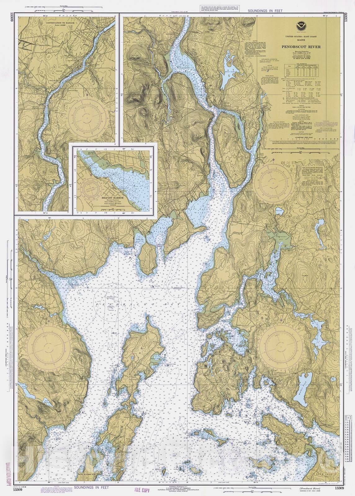 Historic Nautical Map - Penobscot River, 1982 NOAA Chart - Maine (ME) - Vintage Wall Art