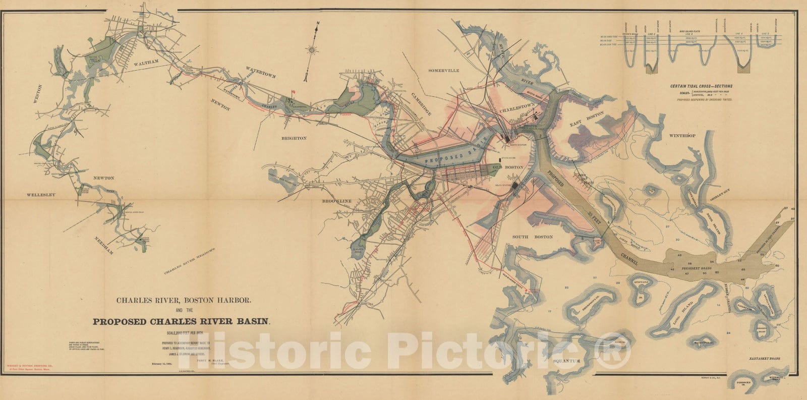 • Historic Map : Proposed Charles River Basin 1902 Charles River Dam Report , Vintage Wall Art