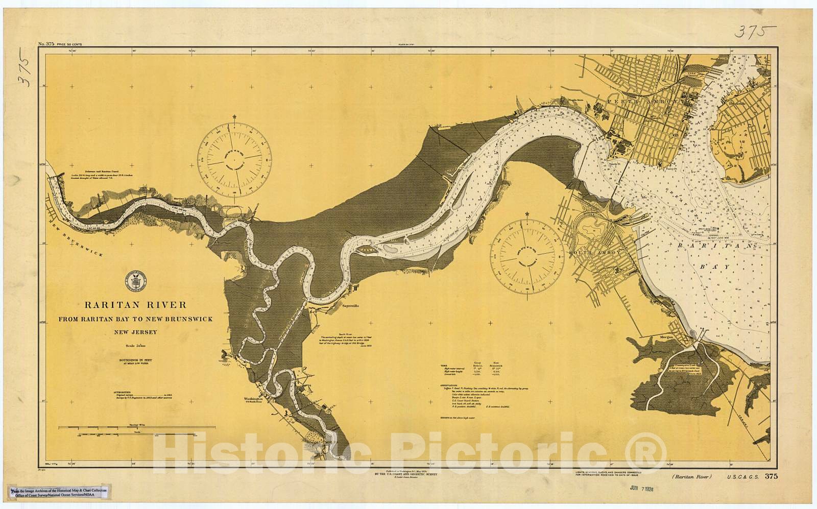 Historic Nautical Map - Raritan River, Nj, 1924 NOAA Chart - New Jersey (NJ) - Vintage Wall Art