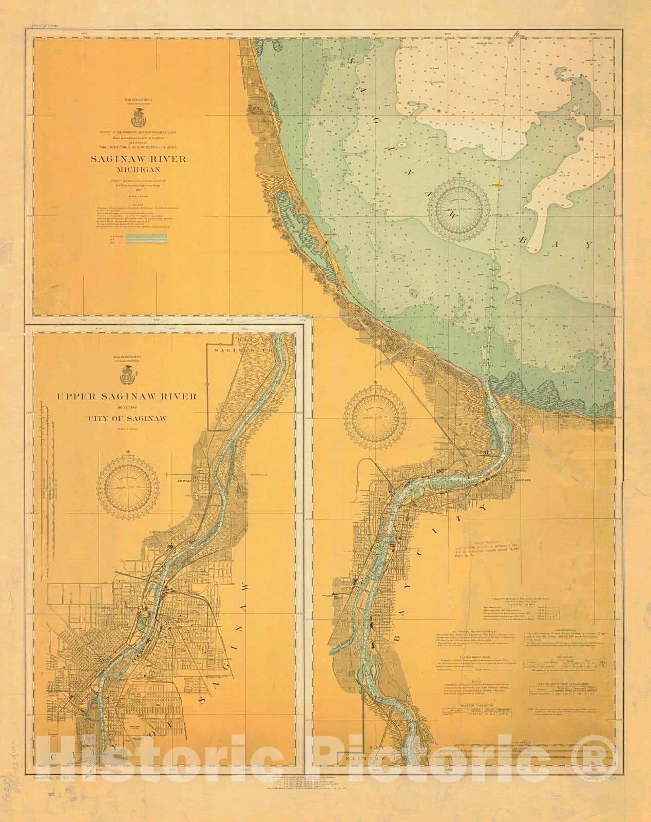 Historic Nautical Map - Saginaw River, Michigan, 1918 NOAA Chart - Michigan (MI) - Vintage Wall Art