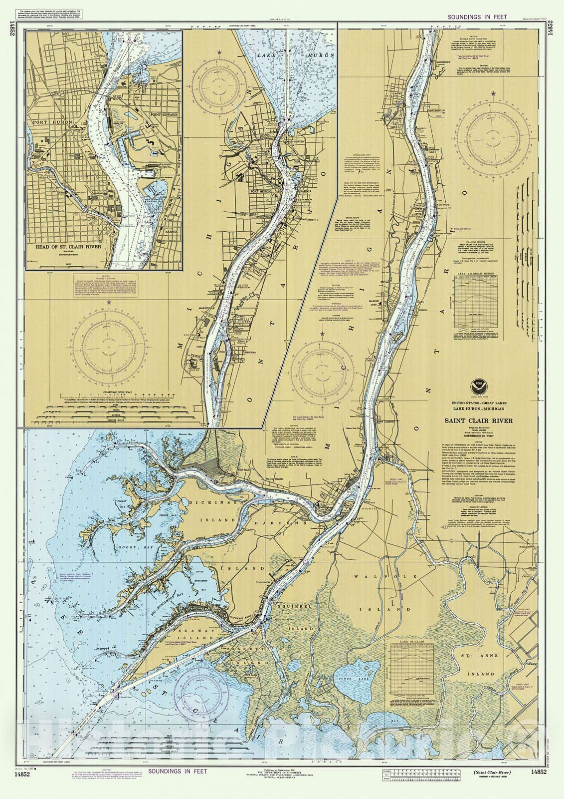 Historic Nautical Map - Saint Clair River, 1987 NOAA Chart - Michigan (MI) - Vintage Wall Art