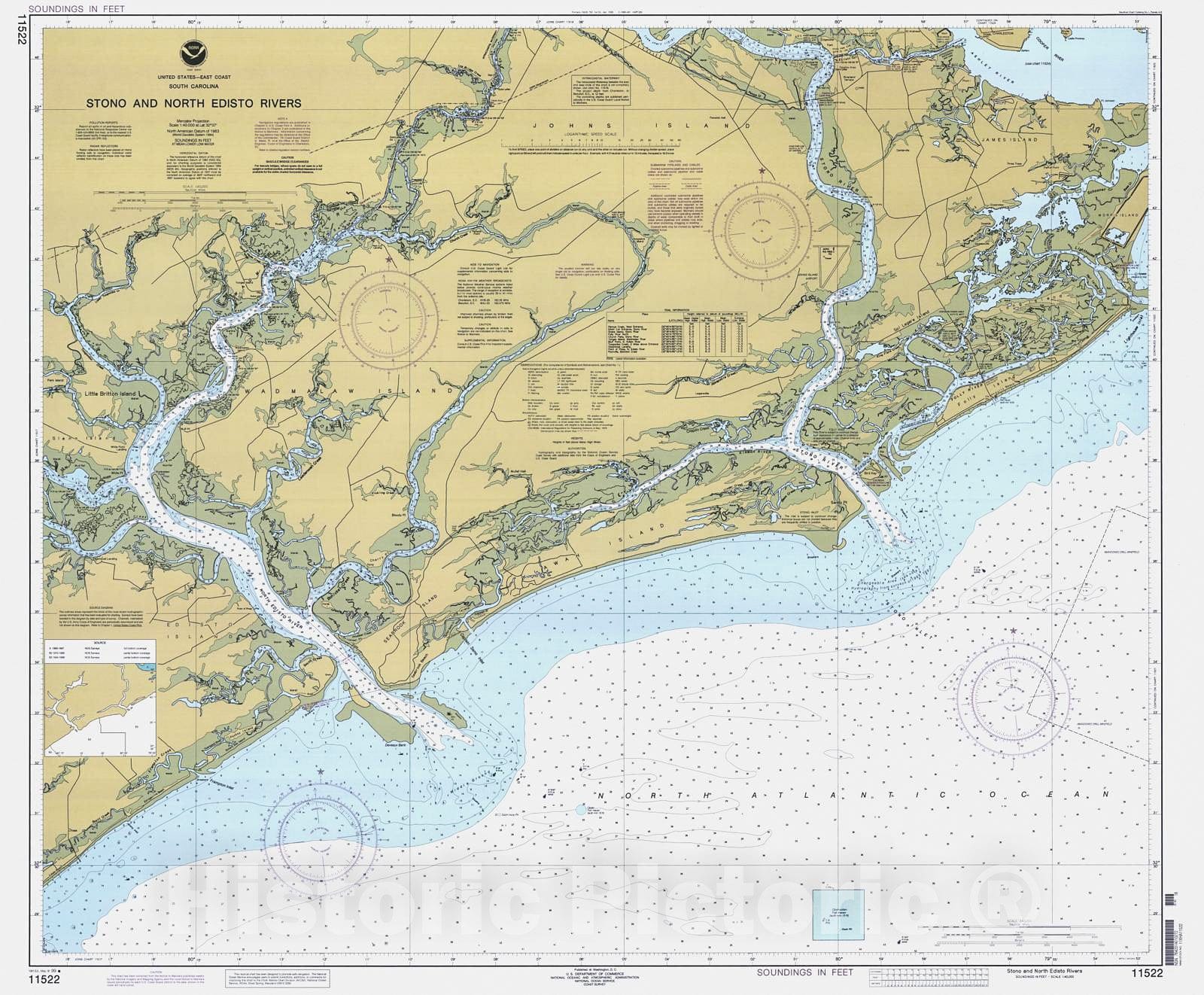Historic Nautical Map - Stono And North Edisto Rivers, 1999 NOAA Chart - South Carolina (SC) - Vintage Wall Art