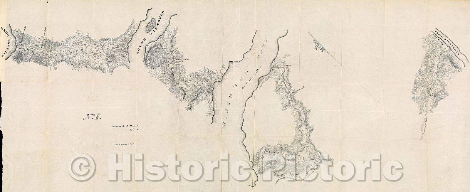 Historic Map : Survey of Kennebeck River, Vintage Wall Art
