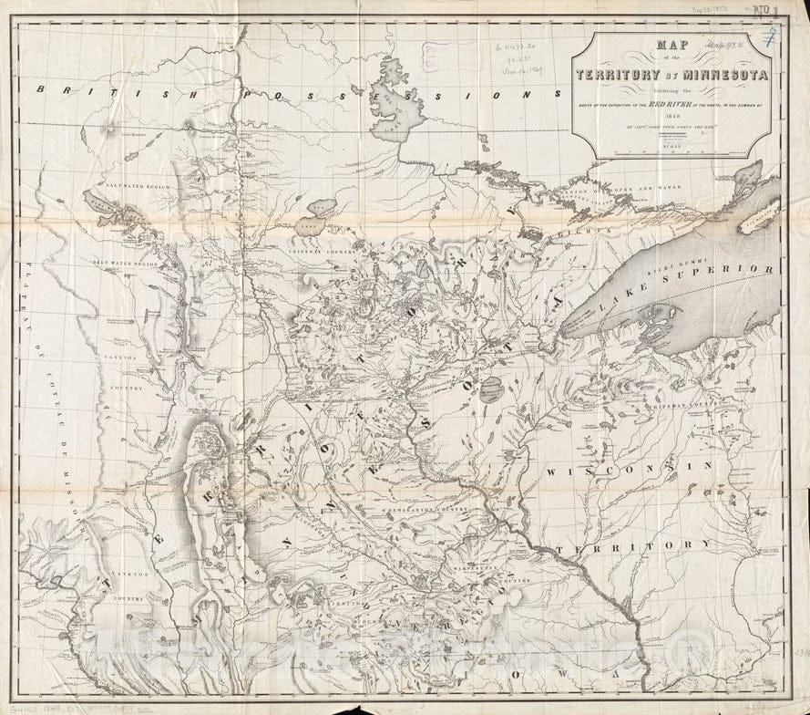 Historical Map, Map of The Territory of Minnesota exhibiting The Route of The Expedition to The Red River of The North, in The Summer of 1849, Vintage Wall Art