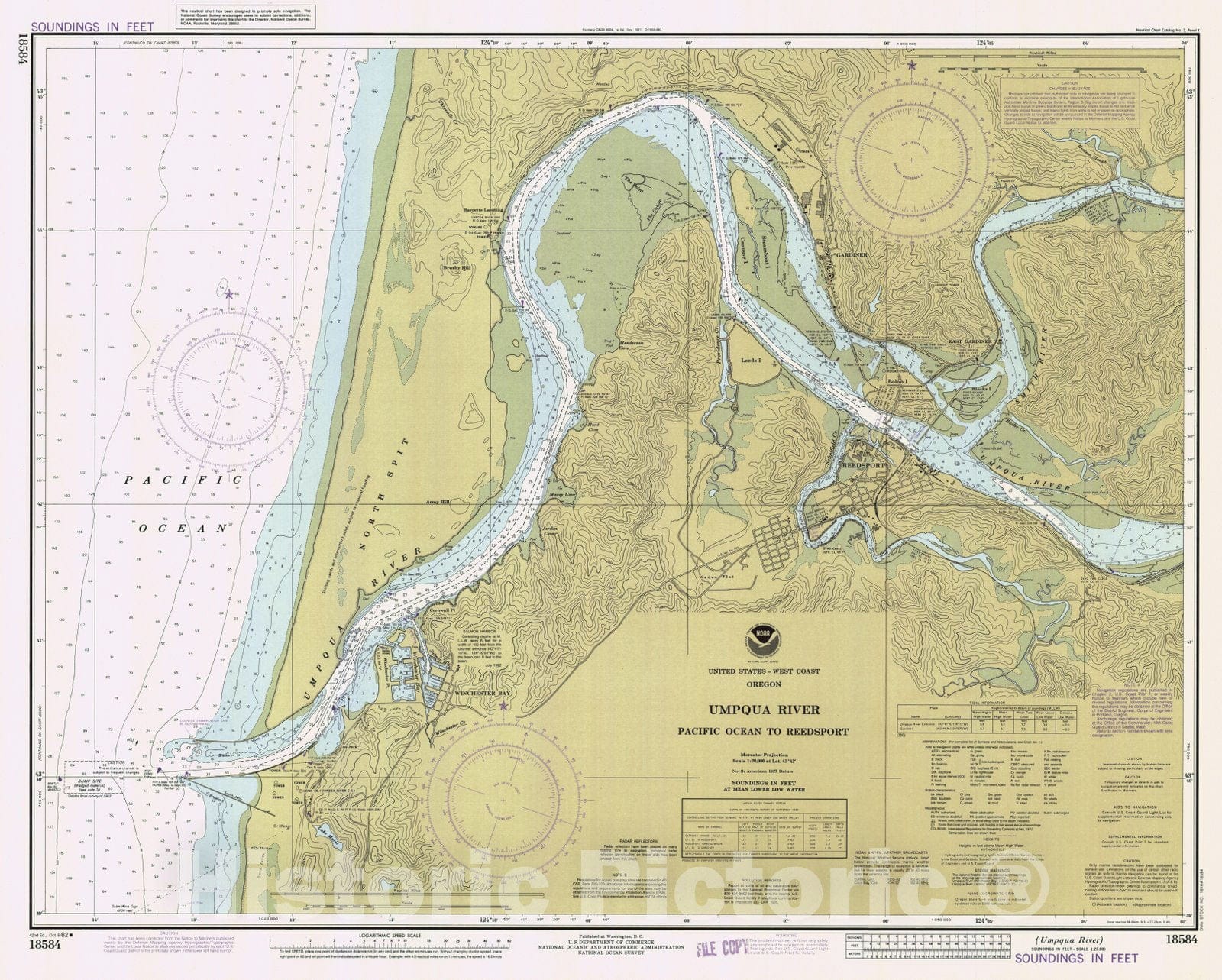 Historic Nautical Map - Umpqua River, OR, 1982 NOAA Chart - Vintage Wall Art