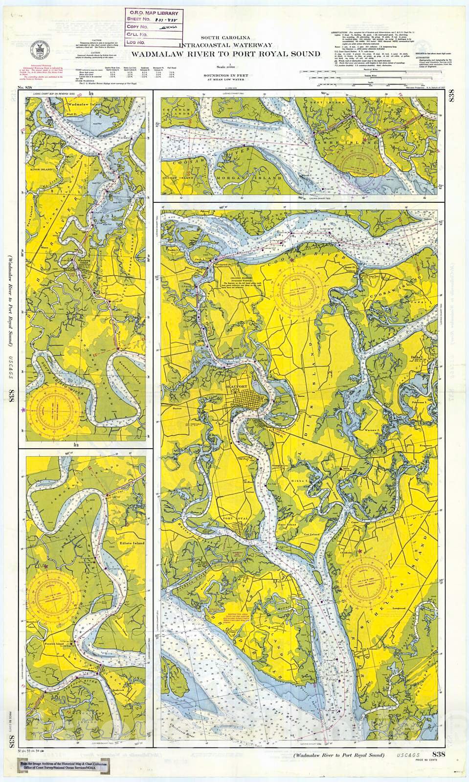 Historic Nautical Map - Wadmalaw River To Port Royal Sound, 1954 NOAA Chart - South Carolina (SC) - Vintage Wall Art