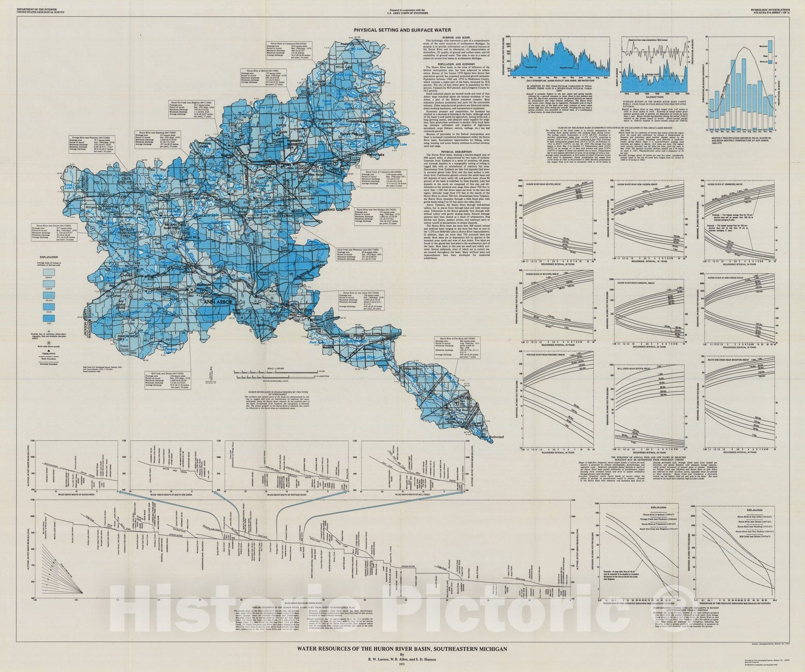 Map : Water resources of the Huron River basin, southeastern Michigan, 1975 Cartography Wall Art :