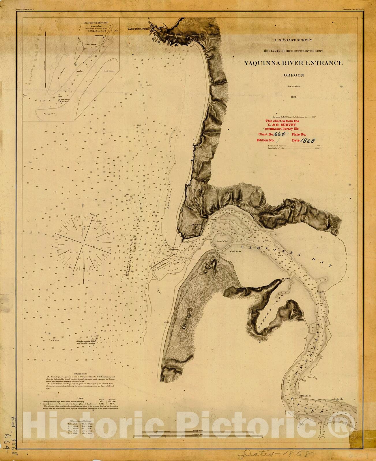 Historic Nautical Map - Yaquina River Entrance, 1868 NOAA Chart - Oregon (OR) - Vintage Wall Art