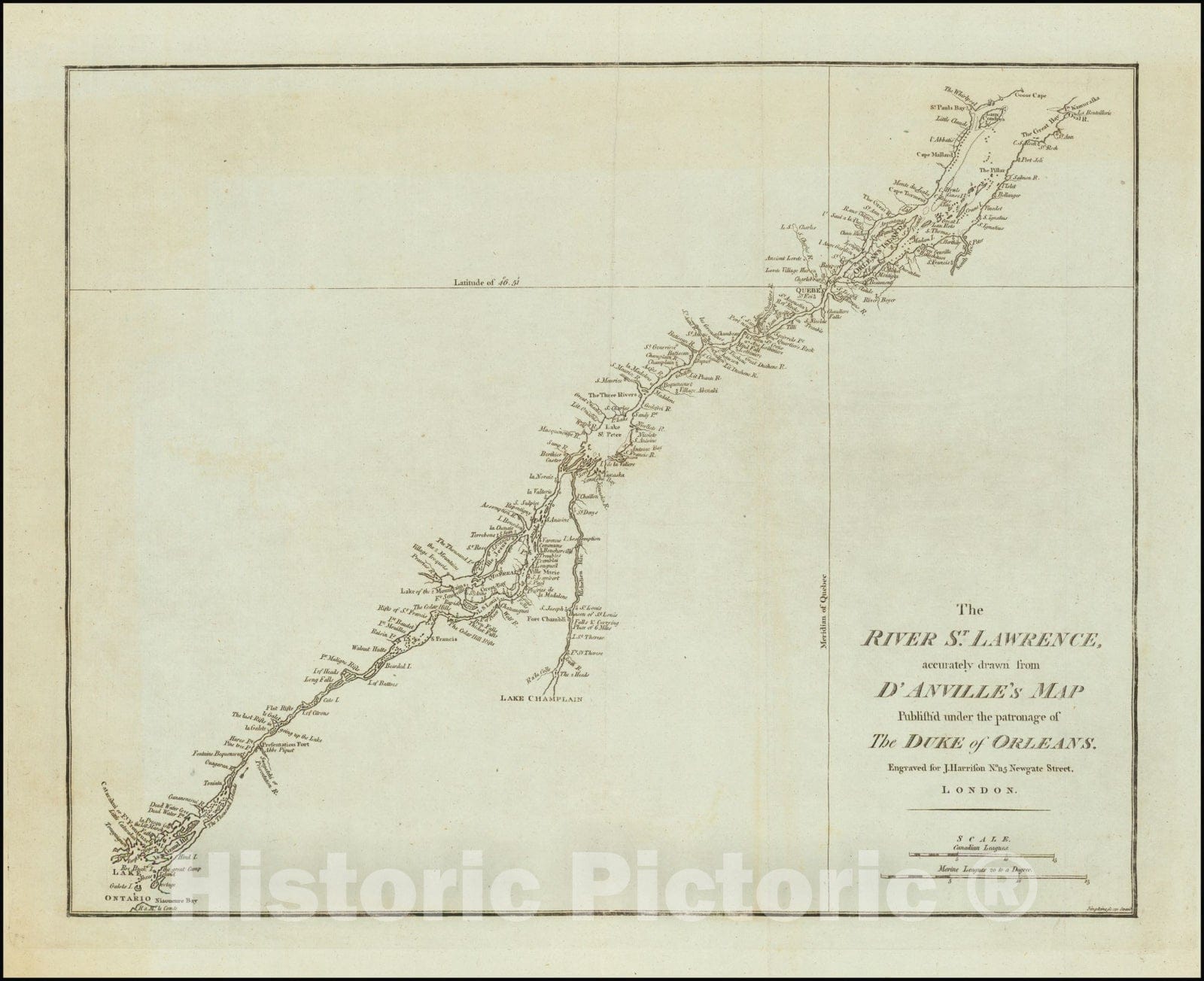 • .Historic Map : The River St. Lawrence, accurately drawn from D'Anville's Map Published under the patronage of The Duke of Orleans., 1794, Vintage Wall Art