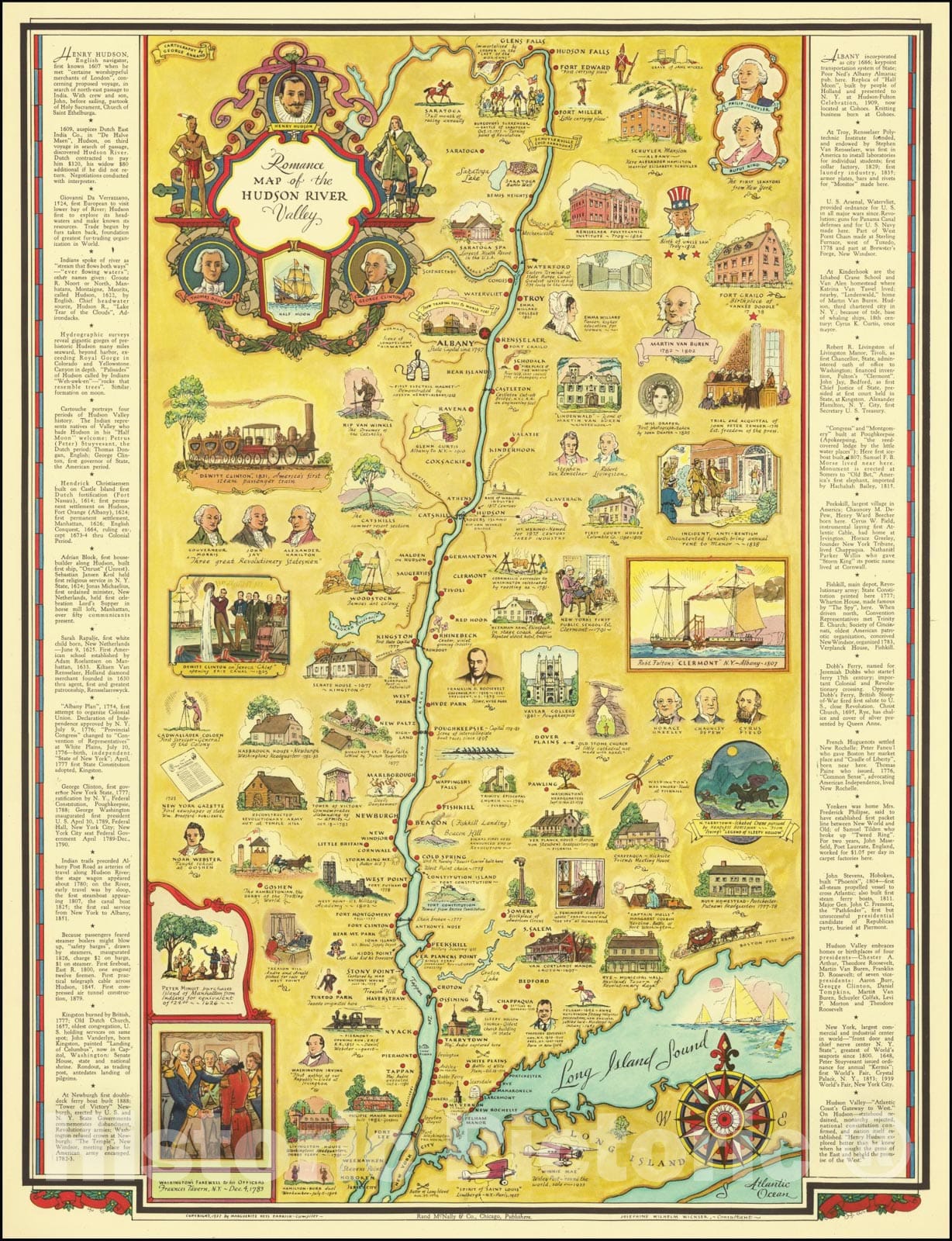 Historic Map : Romance Hudson River Valley, 1937, Vintage Wall Art