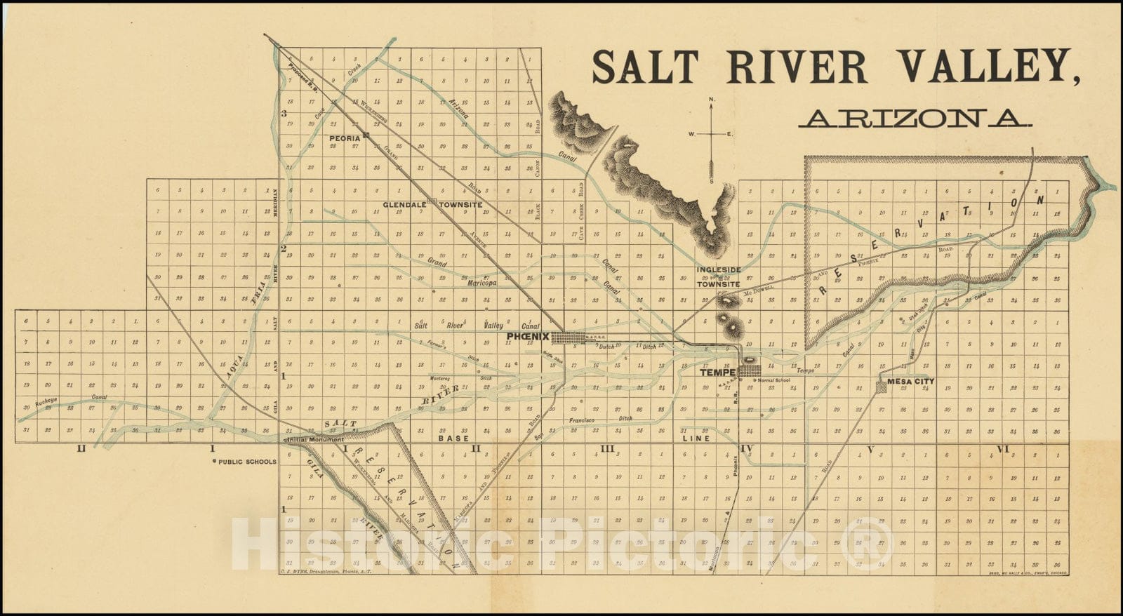 Historic Map : Salt River Valley, Arizona, 1887, Vintage Wall Art
