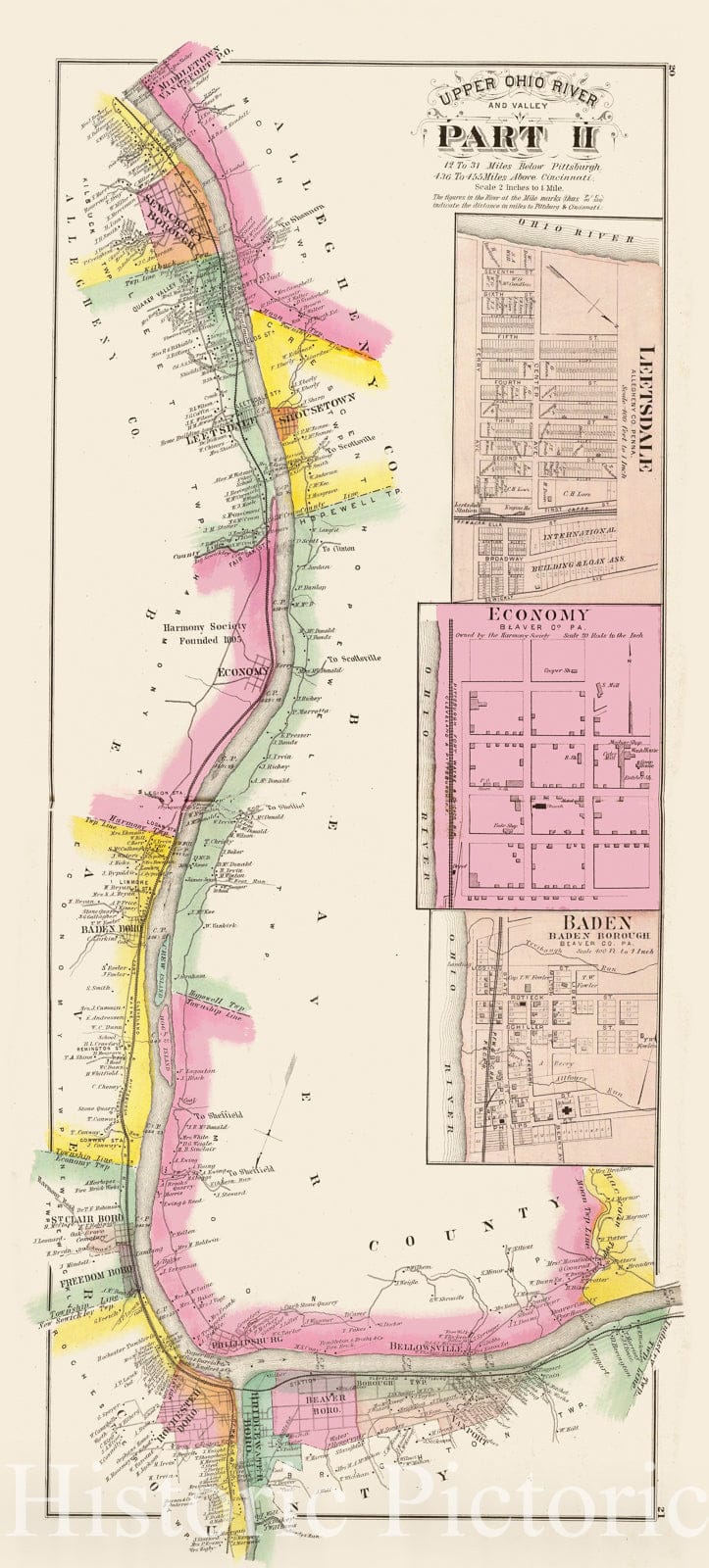 Historic Map : 1877 Upper Ohio River and Valley part II, 12 to 31 miles below Pittsburgh, (with) Economy, Baden. - Vintage Wall Art