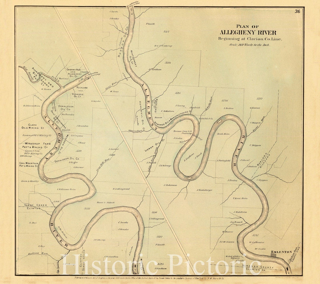 Historic Map : 1865 Allegheny River. v1 - Vintage Wall Art