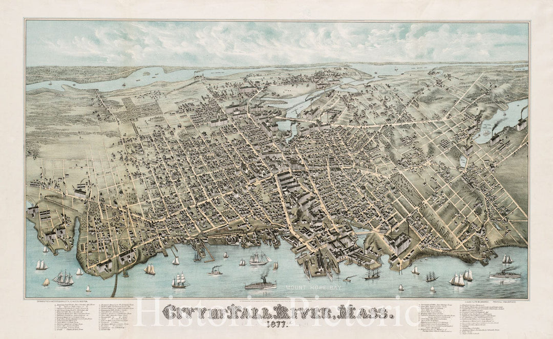 Historical Map, City of Fall River, Mass : 1877, Vintage Wall Art