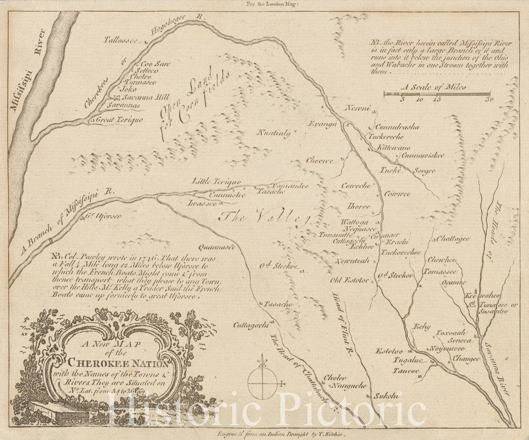 Historical Map, 1760 A New map of The Cherokee Nation : with The Names of The Towns & Rivers They are situated on No. LAT from 34 to 36, Vintage Wall Art