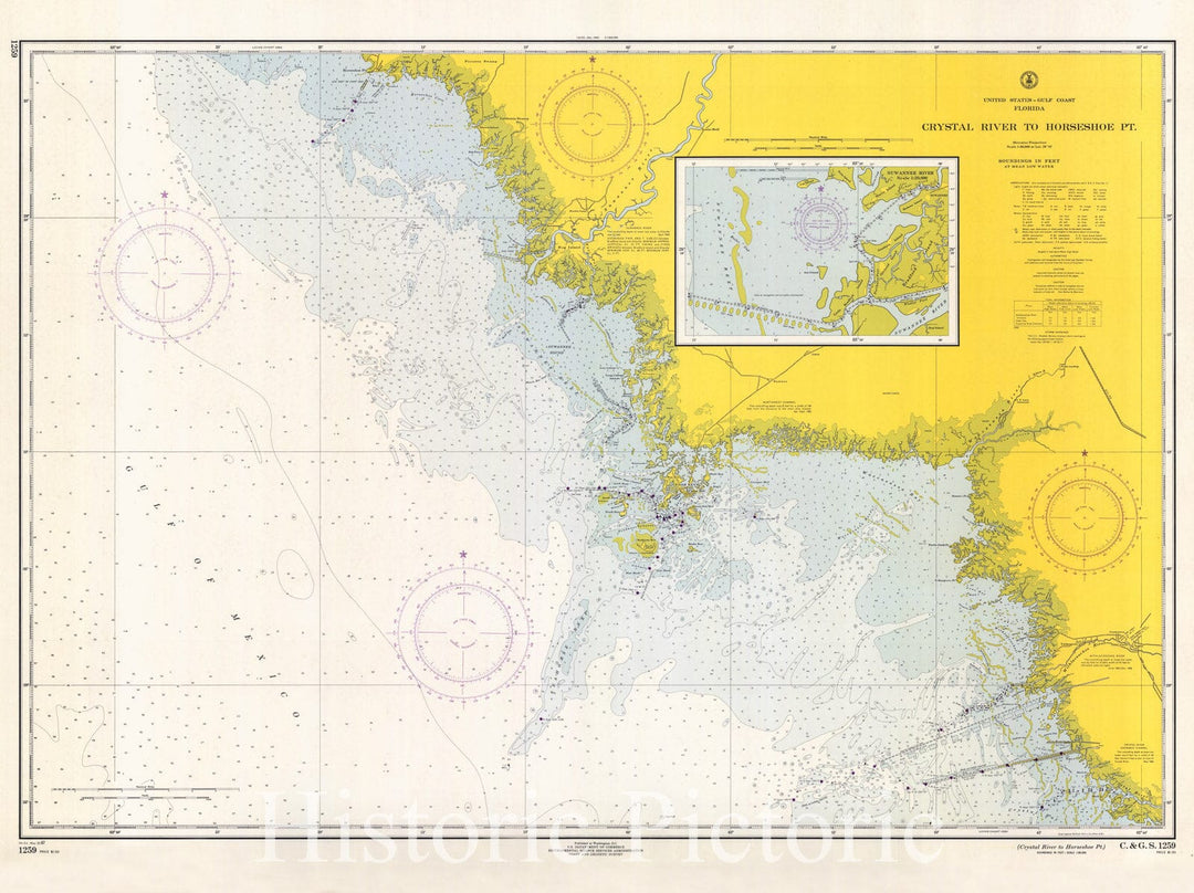 Historic Nautical Map - Crystal River To Horseshoe Pt, 1967 NOAA Chart - Florida (FL) - Vintage Wall Art