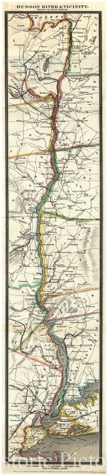 Historic 1835 Map - Hudson River & Vicinity - Vintage Wall Art