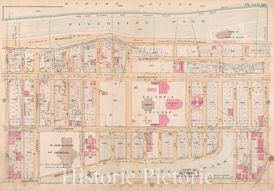 Historic 1897 Map - [Plate 38: Bounded By (Hudson River) Riverside Park, Drive, W. 1 - Vintage Wall Art