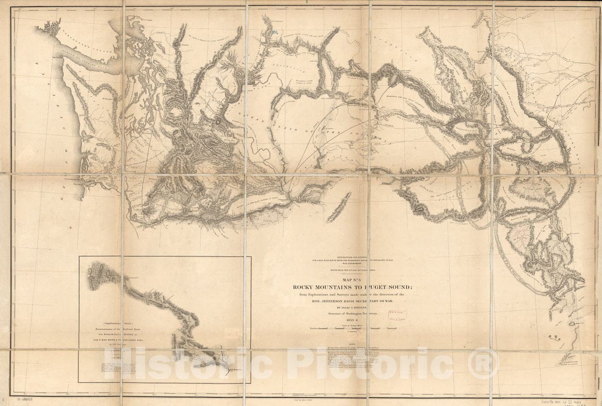 • .Historic 1859 Map - Rocky Mountains to Puget Sound : from explorations and surveys