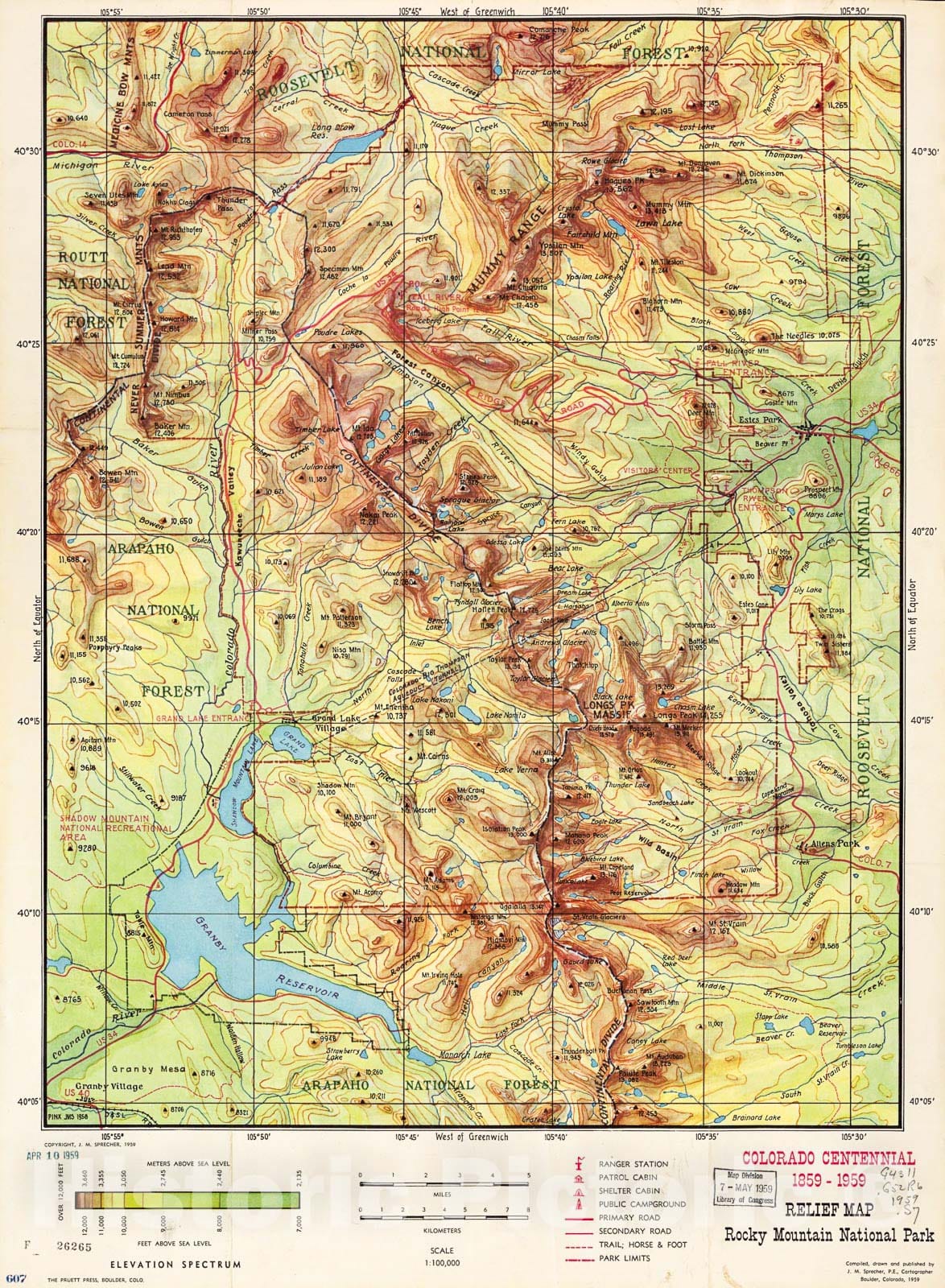 Historic 1959 Map - Relief map, Rocky Mountain National Park : Colorado Centennial, 1859-1959