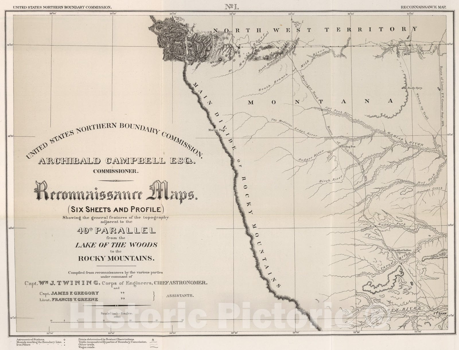• .Historic Map : No. I, Reconnaissance Map. (Fort Shaw to Rocky Mountain Divide)., 1878, Vintage Wall Art