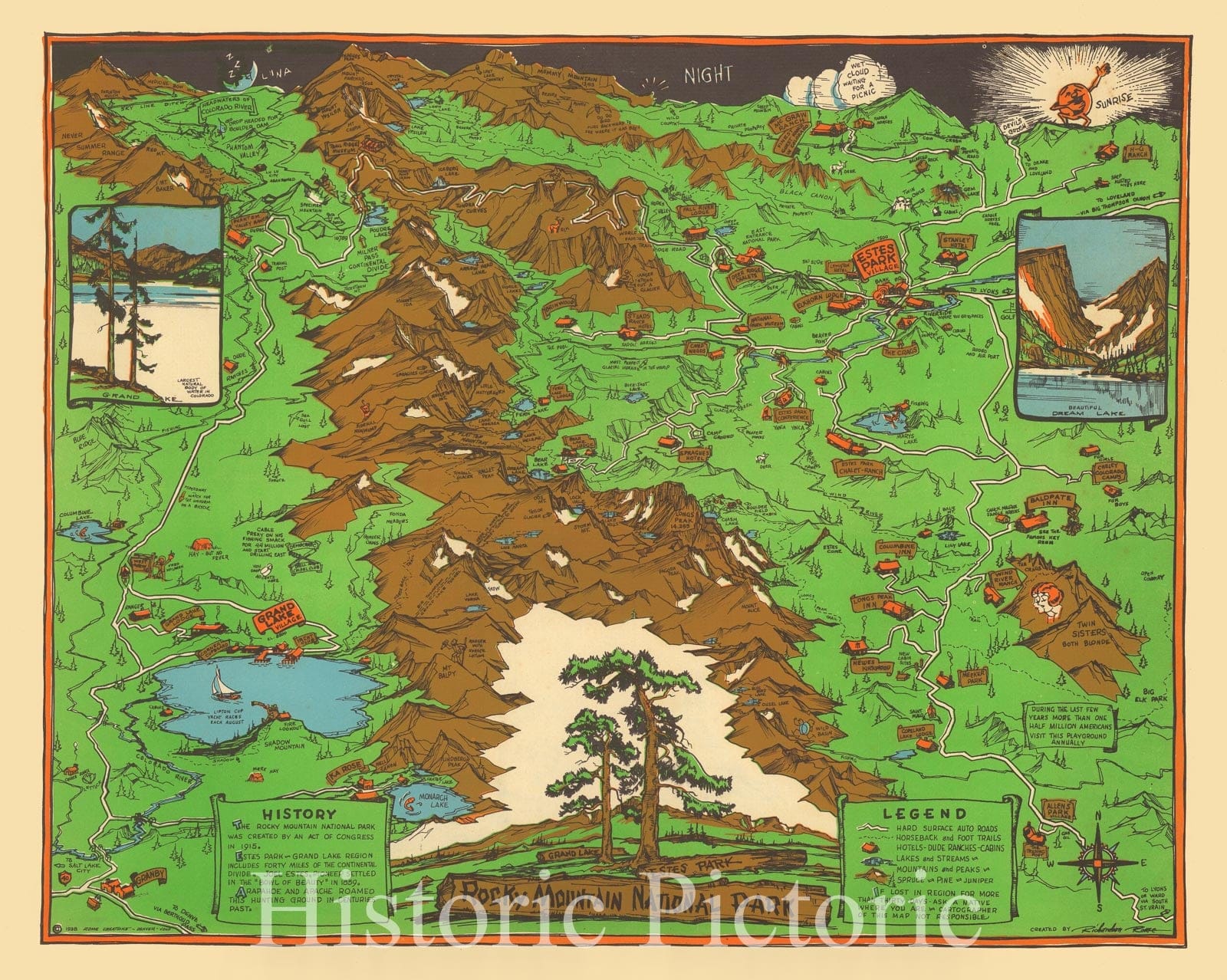 Rocky Mountain National Park, Grand Lake, Estes Park. Created by Richardson Rome. 1938 Rome Creation - Denver - Colo. (inset views) Grand Lake. (with) Dream Lake. | Rocky Mountain National Park, Grand Lake, Estes Park. Created by Richardson Rome. 1938 Rome Creation - Denver - Colo. (inset views) Grand Lake. (with) Dream Lake. | See note field above.