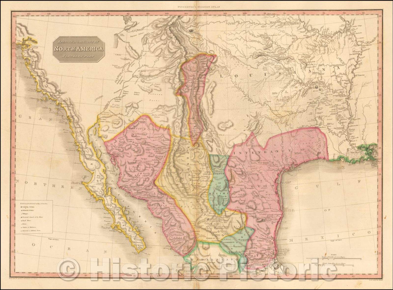 Historic Map - Spanish Dominions In North America Northern Part (Texas, Mexico, Rocky Mountains, Upper California, etc.), 1811, John Pinkerton - Vintage Wall Art