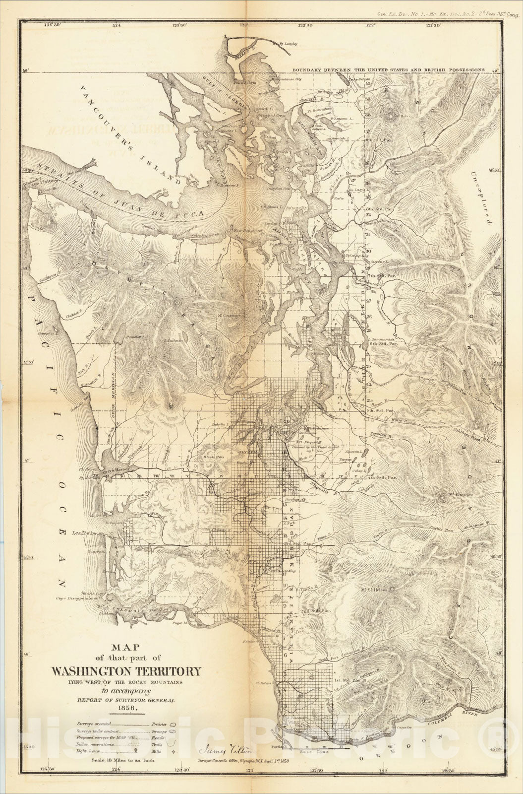 • .Historic Map : Map of that part of Washington Territory Lying West of the Rocky Mountains to accompany Report of Surveyor General 1858, 1858, Vintage Wall Art