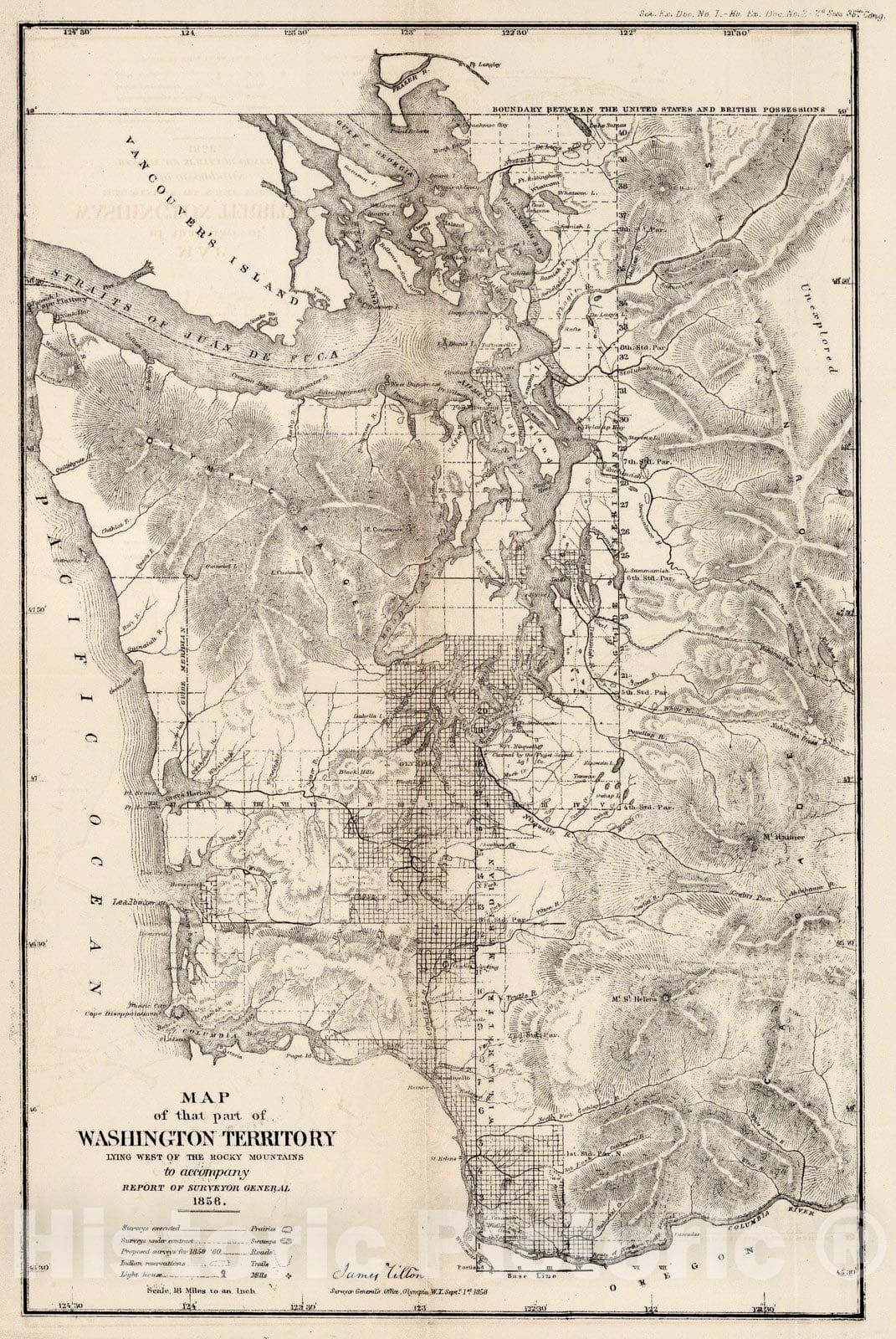 • .Historic Map : Washington Territory Lying West of the Rocky Mountains,1858 1858 - Vintage Wall Art