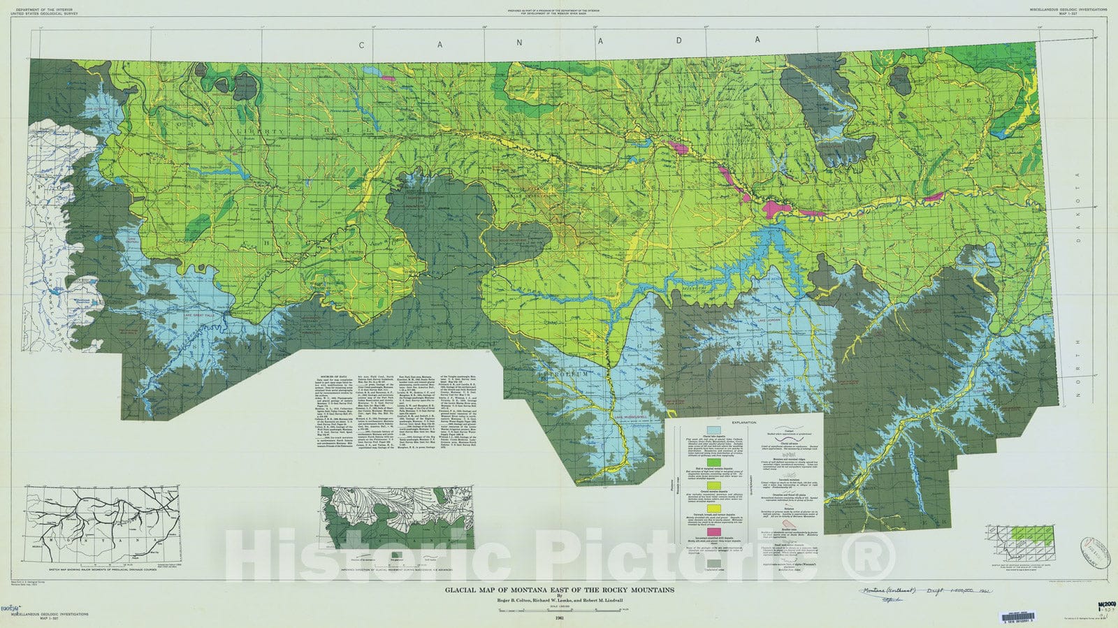 Map : Glacial map of Montana east of the Rocky Mountains, 1961 Cartography Wall Art :