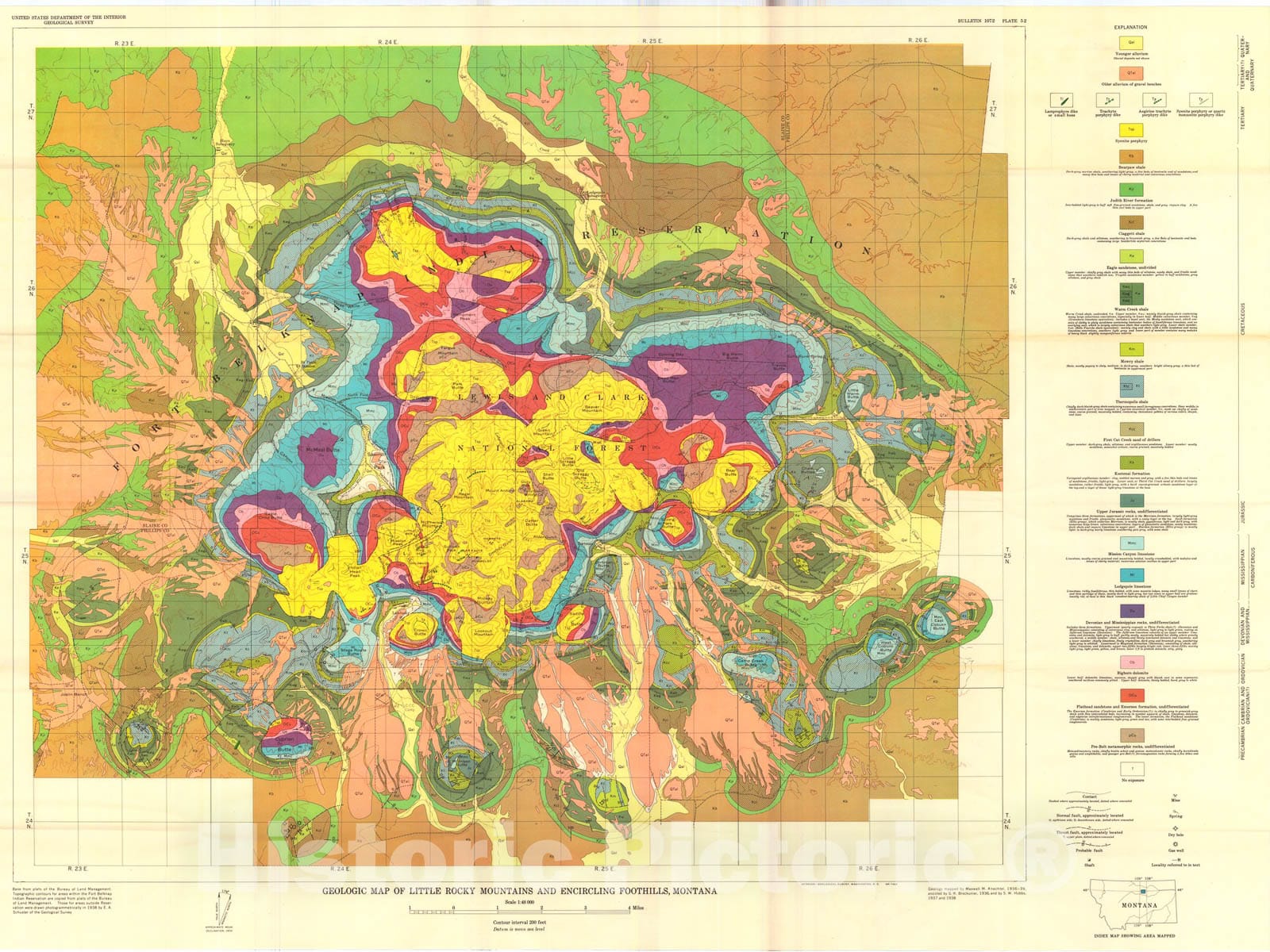 Map : Stratigraphy of the Little Rocky Mountains and encircling foothills, Montana, 1959 Cartography Wall Art :