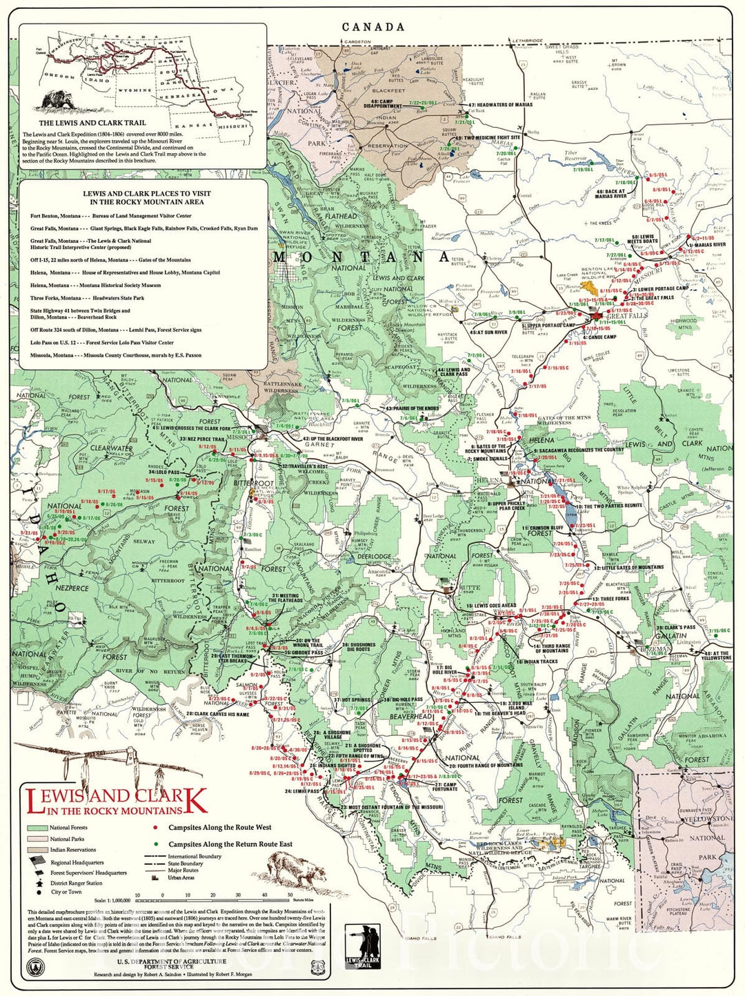 Historic 1990 Map - Lewis and Clark in The Rocky Mountains