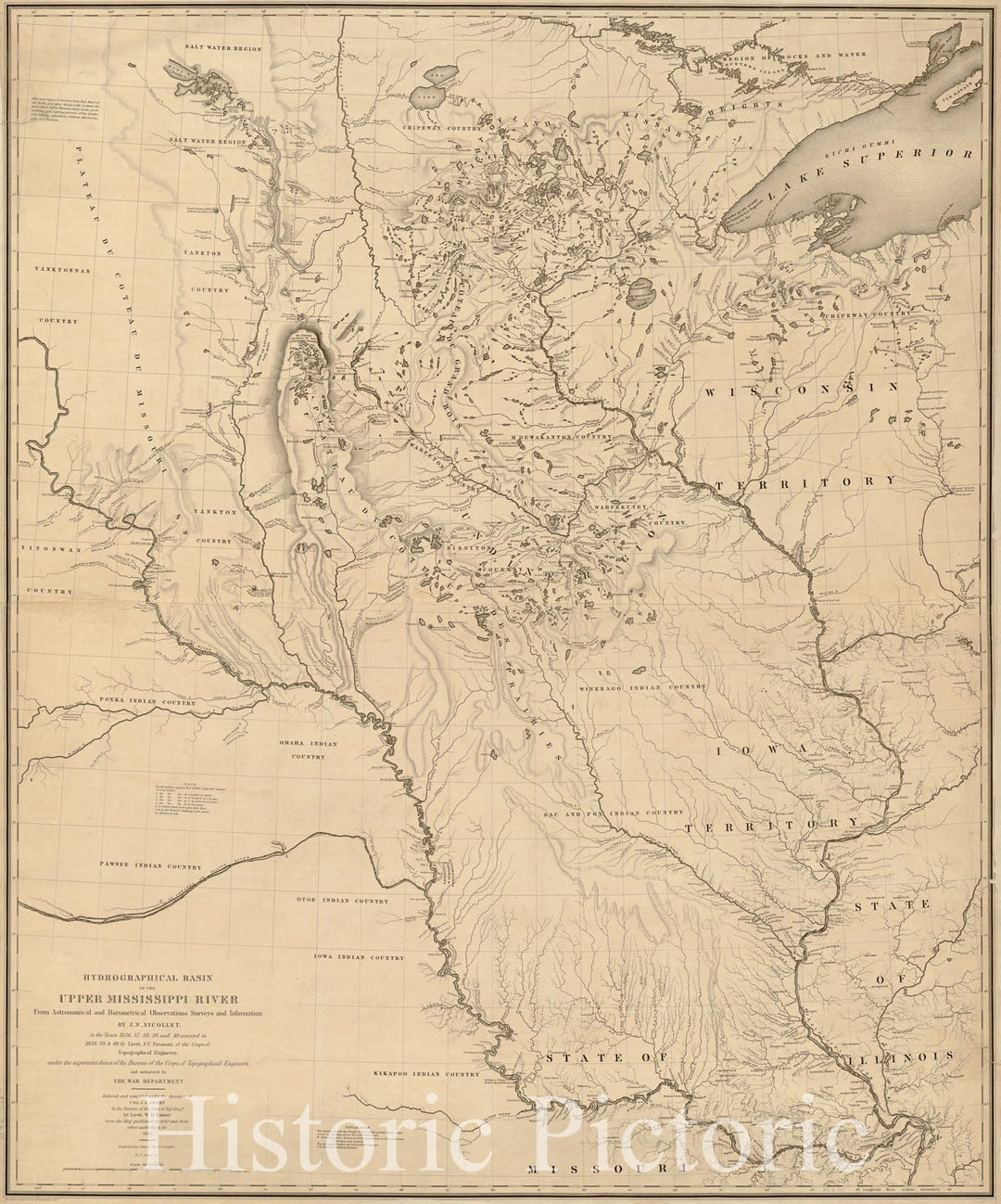 Historic Map - Hydrographical Basin of the Upper Mississippi River from Astronomical and Barometrical Observations Surveys and Information, 1845 v1