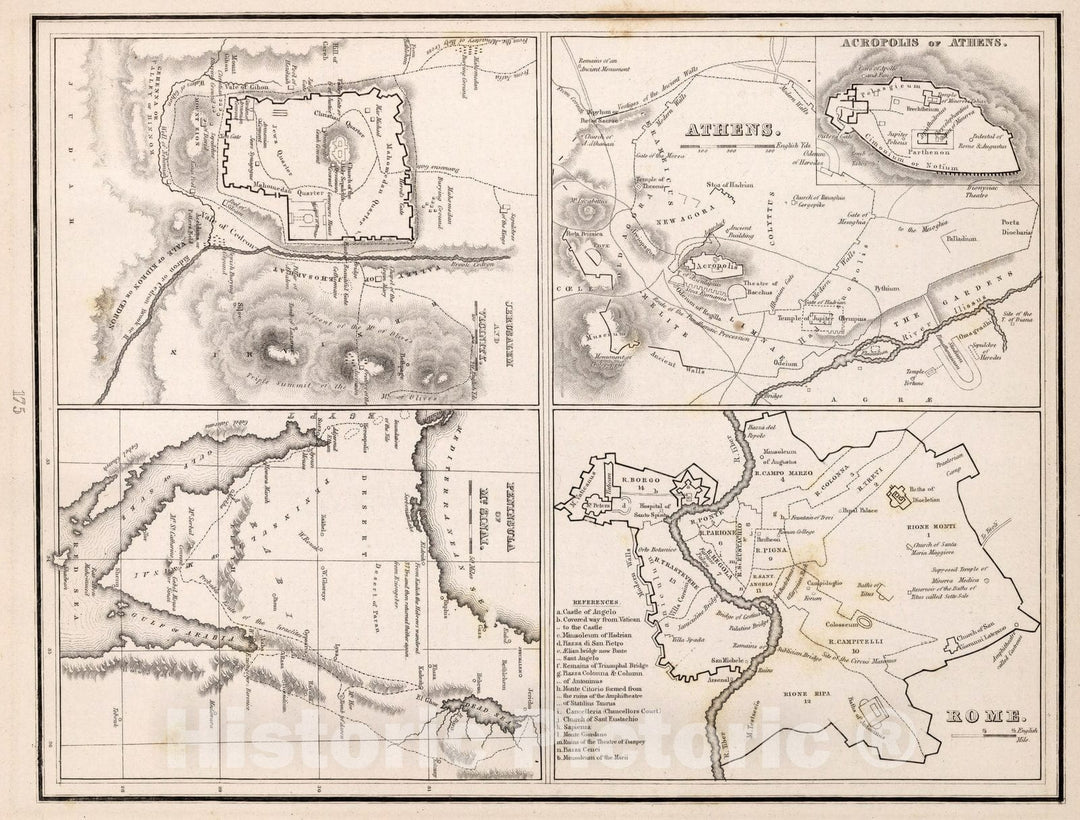 Historic Map : World Atlas Map, Athens, Rome, Jerusalem, Peninsula of M .Sinai 1838 - Vintage Wall Art