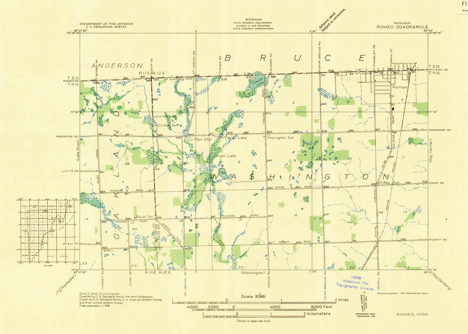 1936 Romeo, MI - Michigan - USGS Topographic Map