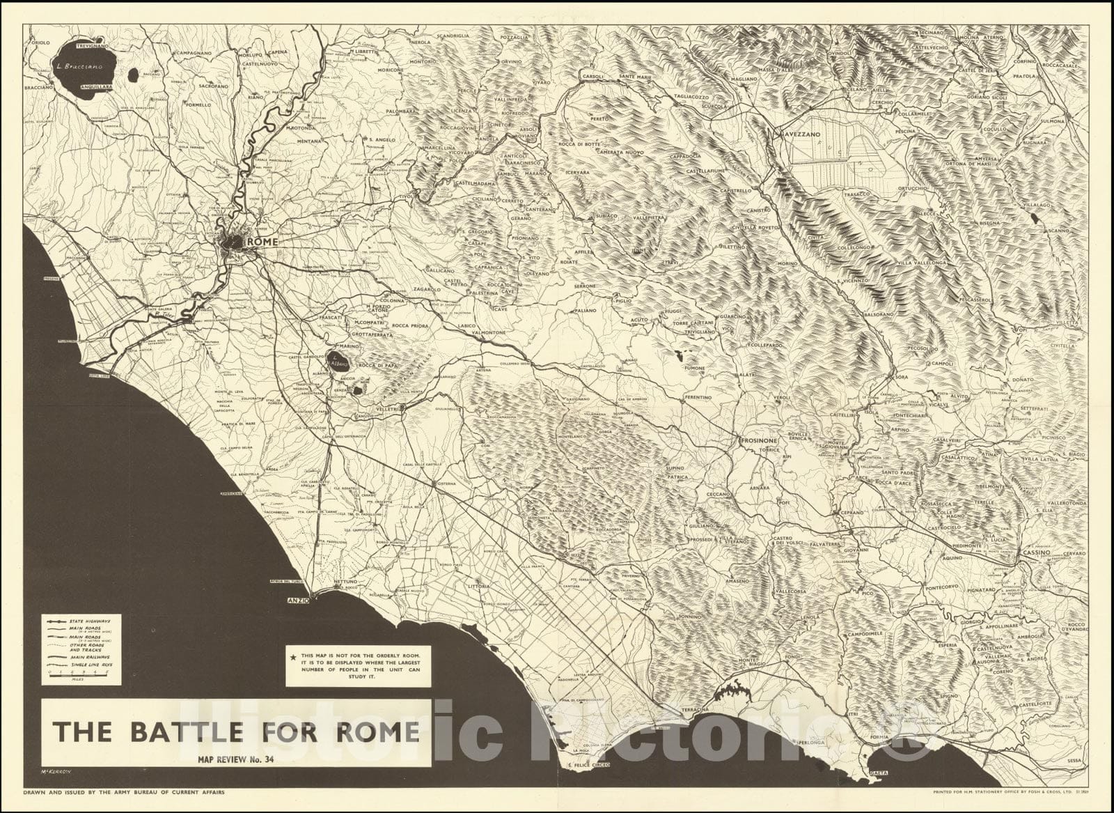 • .Historic Map : The Battle For Rome, 1944, Vintage Wall Art