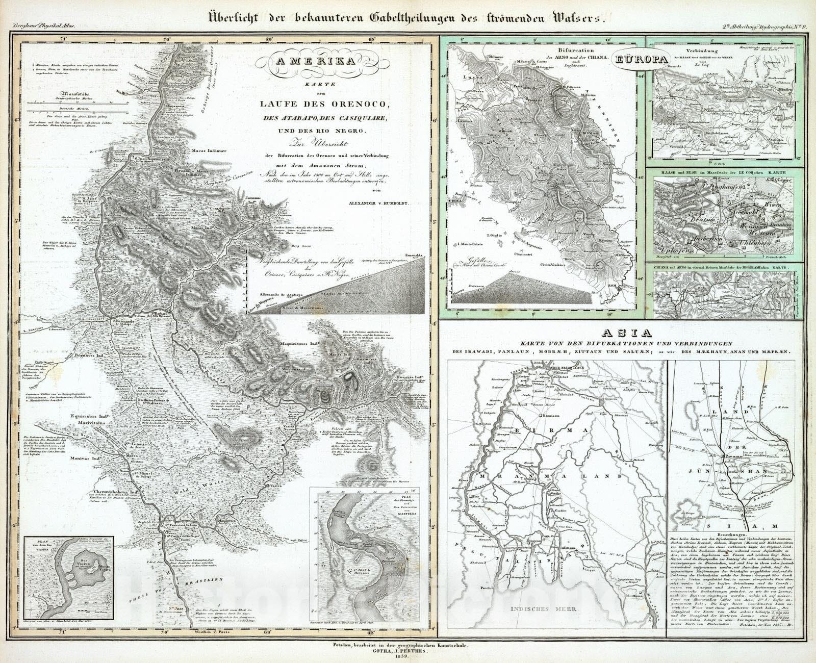 Historic Map : 1839 Ubersicht der bekannteren Gabeltheilungen des Stromenden Wassers. - Vintage Wall Art