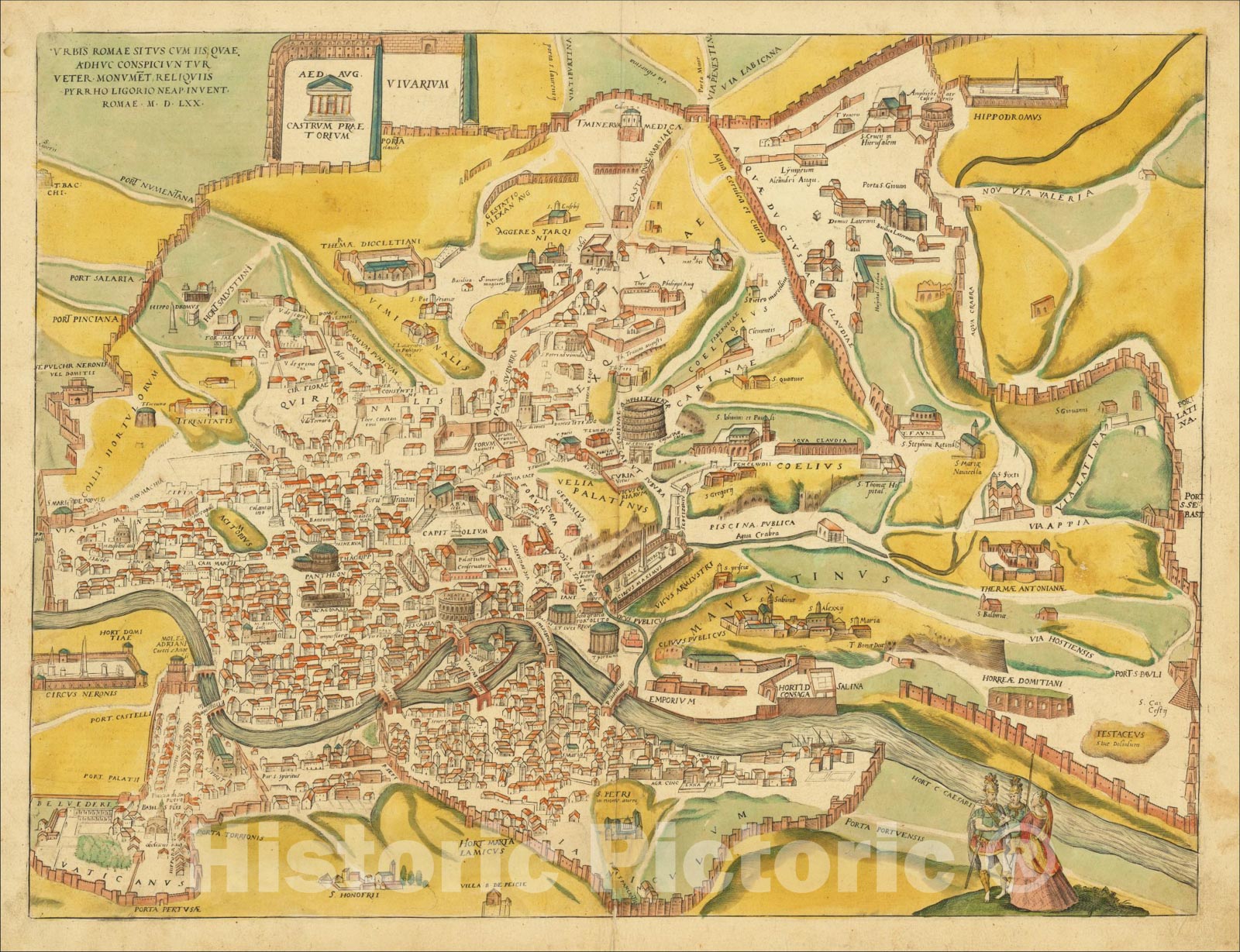 Historic Map : (Ancient Rome) . Urbis Romae Situs Cum IIS Quae Adhuc Conspiciuntur Veter Monumet Relquiis Pyrrho Ligiorio Neap, 1575, Georg Braun, Vintage Wall Art