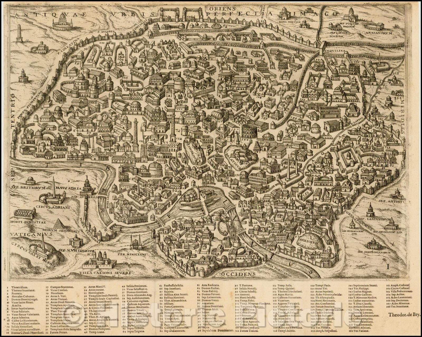 Antiquae Urbis Perfecta Imago / 16th Century Plan of Rome, engraved by Theodore De Bry in Frankfurt., 1597, Theodor De Bry