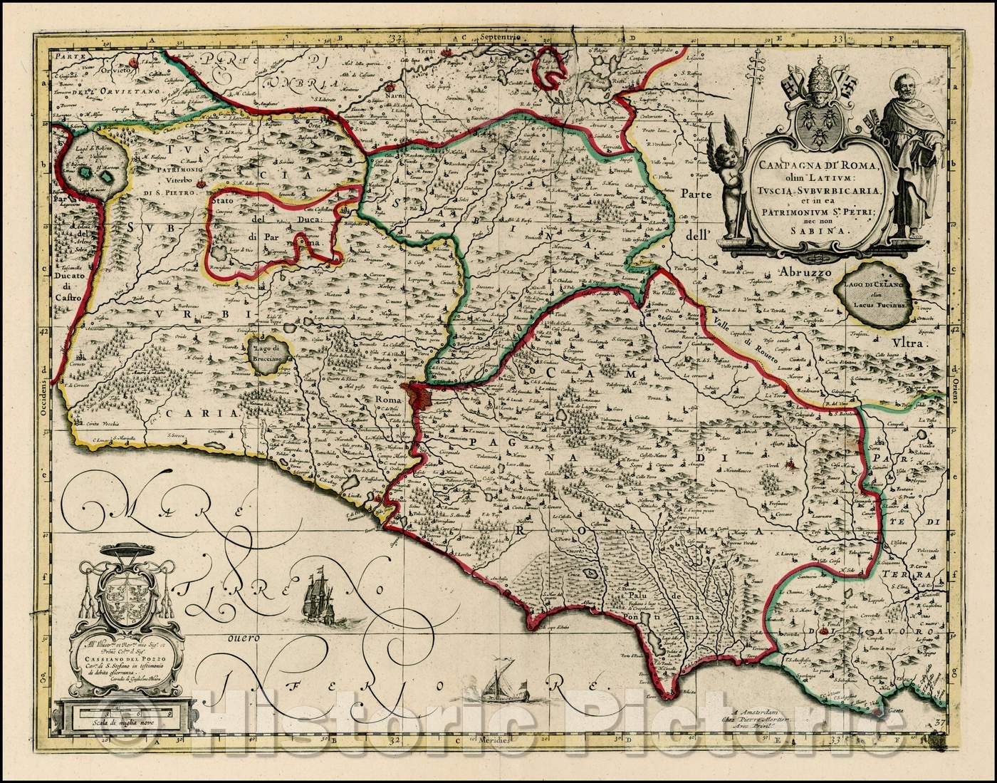 • .Historic Map - Campagna Di Roma olim Latium Tuschia Suburbicaria et in ea Patrimonium St Petri nec non Sabina/Regional Map, centered on Rome, 1690 - Vintage Wall Art