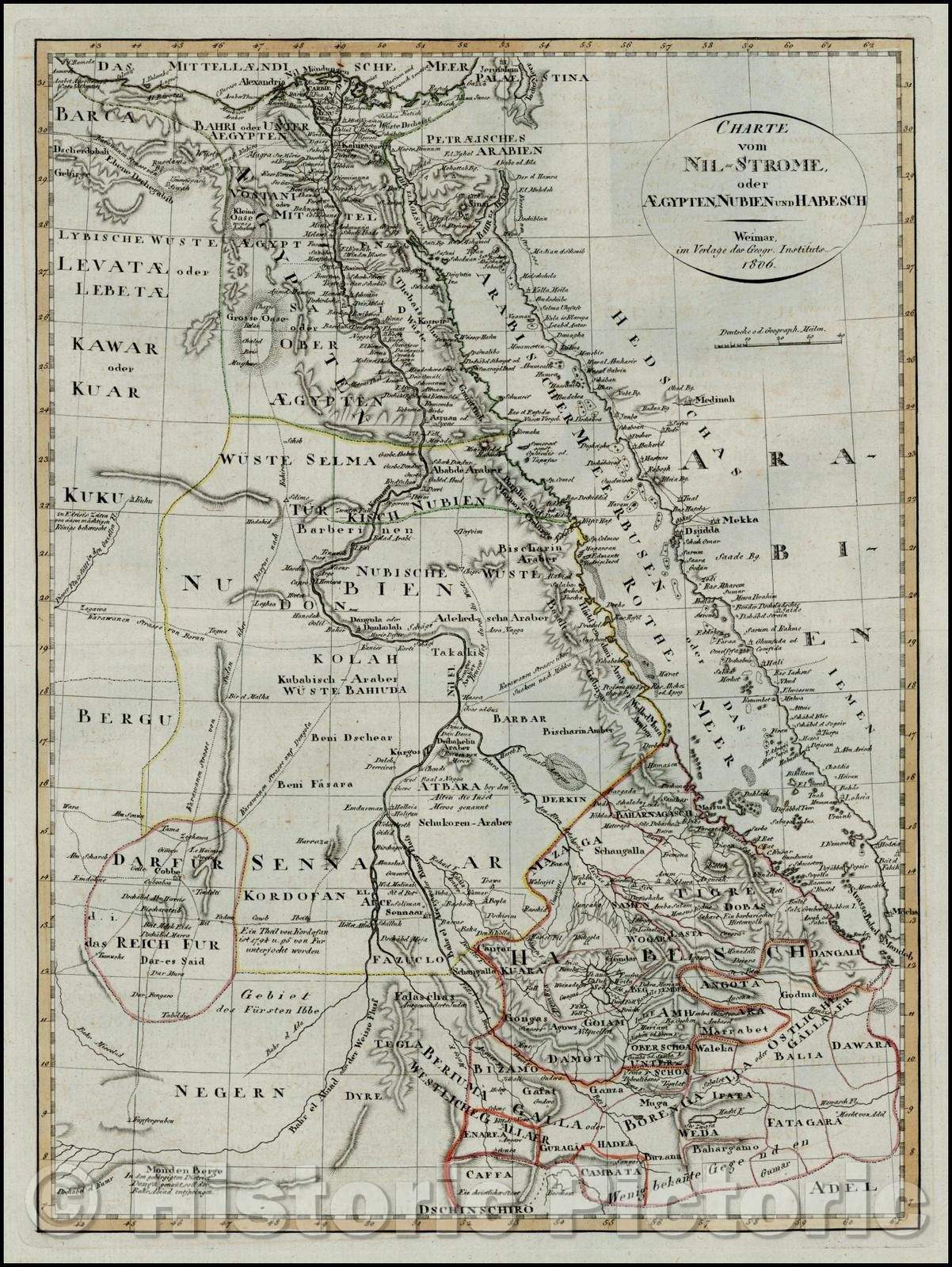 Historic Map - Charte vom Nil-Strome oder Aegyptien, Nubien und Habesch/Charter from Nile river or Aegyptien, Nubia and Abyssinia, 1806, 1806 - Vintage Wall Art