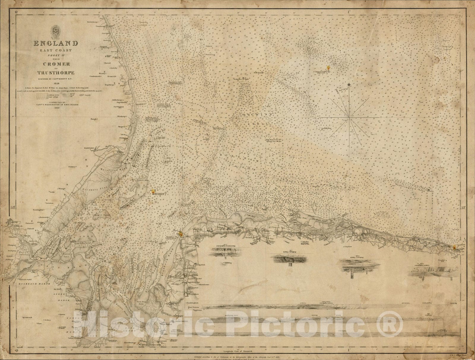 Historic Map : England East Coast Sheet IV From Cromer To Trusthorpe Surveyed By Captn. Hewett R.N., 1828, , Vintage Wall Art