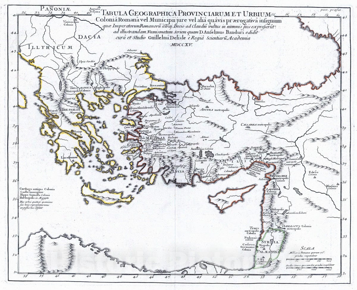 Greece; Turkey, Rome, Asia; Europe 1715 Colonia Romana, Tabula Geographica Provinciarum et Urbium. , Vintage Wall Art