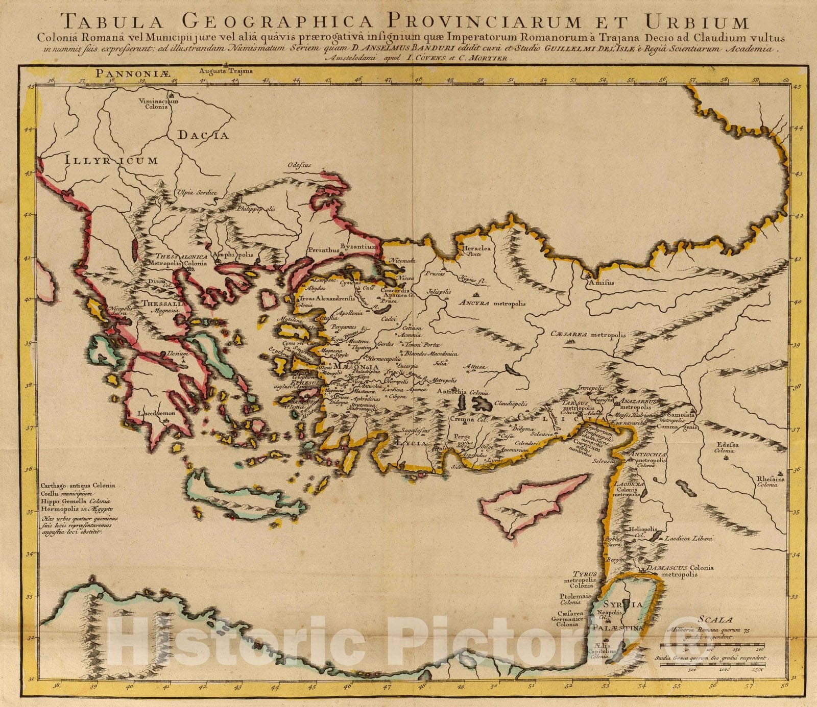 Greece; Turkey, Rome, Asia; Europe 1742 Colonia Romana, Tabula Geographica Provinciarum et Urbium. , Vintage Wall Art