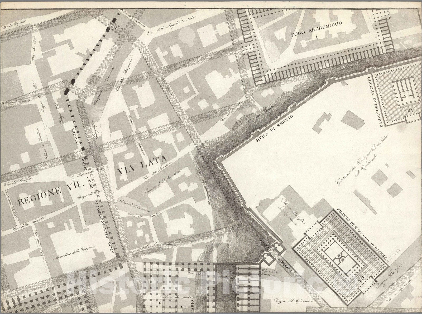 Historic Map : Italy , Rome (Italy), TAV III .A Pianta topografica della parte media di Roma antica 1847 , Vintage Wall Art