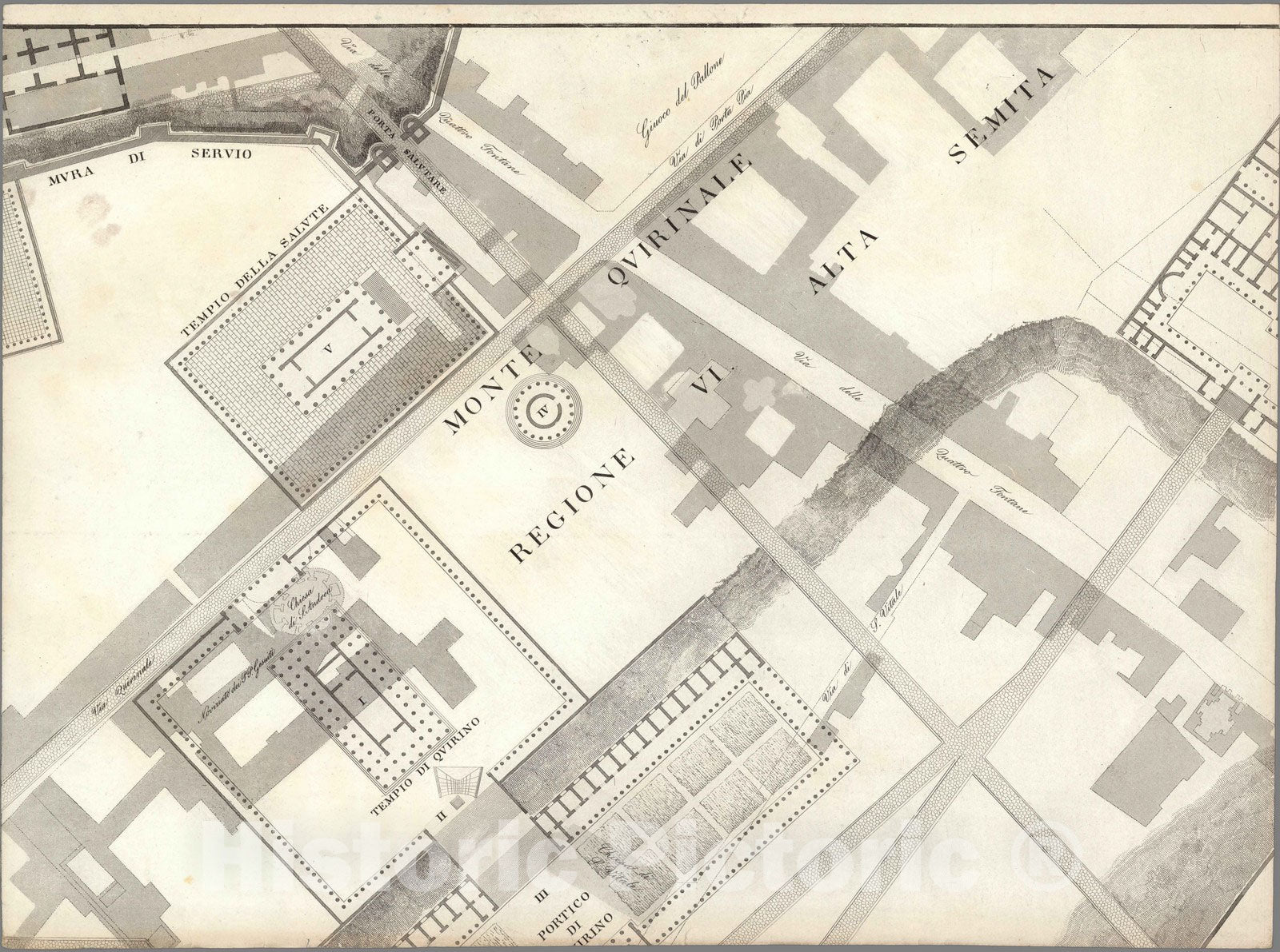 Historic Map : Italy , Rome (Italy), TAV IV .A Pianta topografica della parte media di Roma antica 1847 , Vintage Wall Art