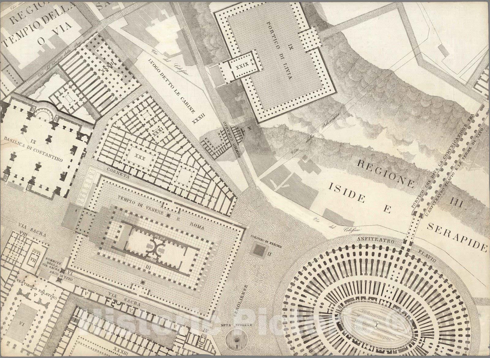 Historic Map : Italy , Rome (Italy), TAV IX .B Pianta topografica della parte media di Roma antica 1847 , Vintage Wall Art