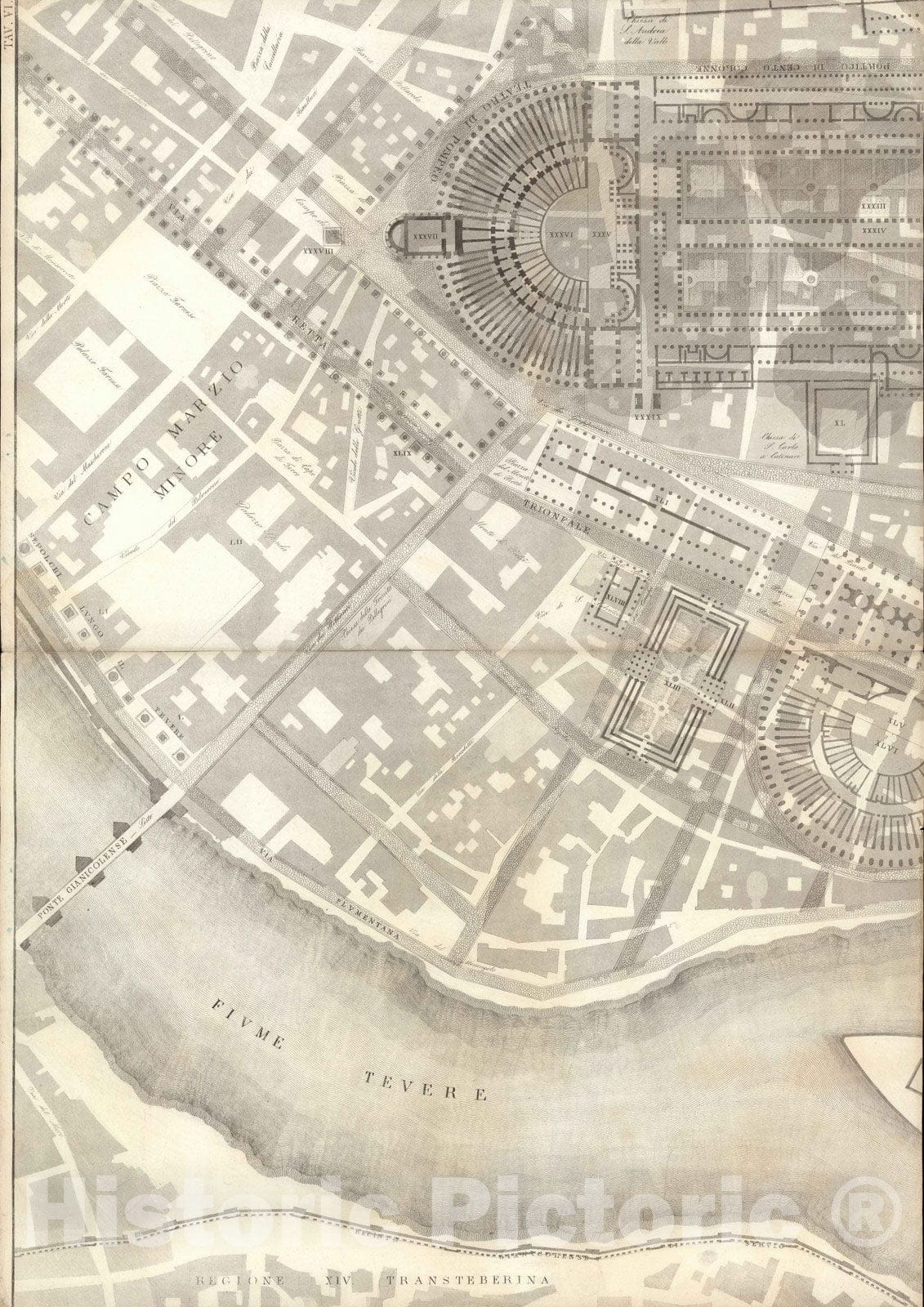 Historic Map : Italy , Rome (Italy), TAV VI .A-B Pianta topografica della parte media di Roma antica 1847 , Vintage Wall Art