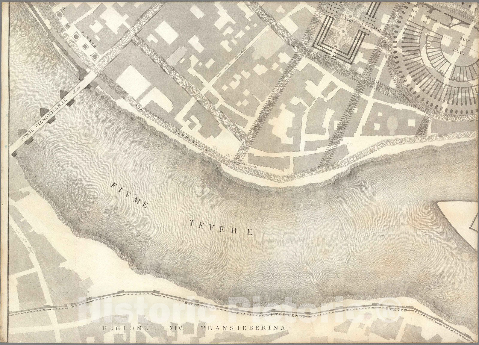 Historic Map : Italy , Rome (Italy), TAV VI .B Pianta topografica della parte media di Roma antica 1847 , Vintage Wall Art