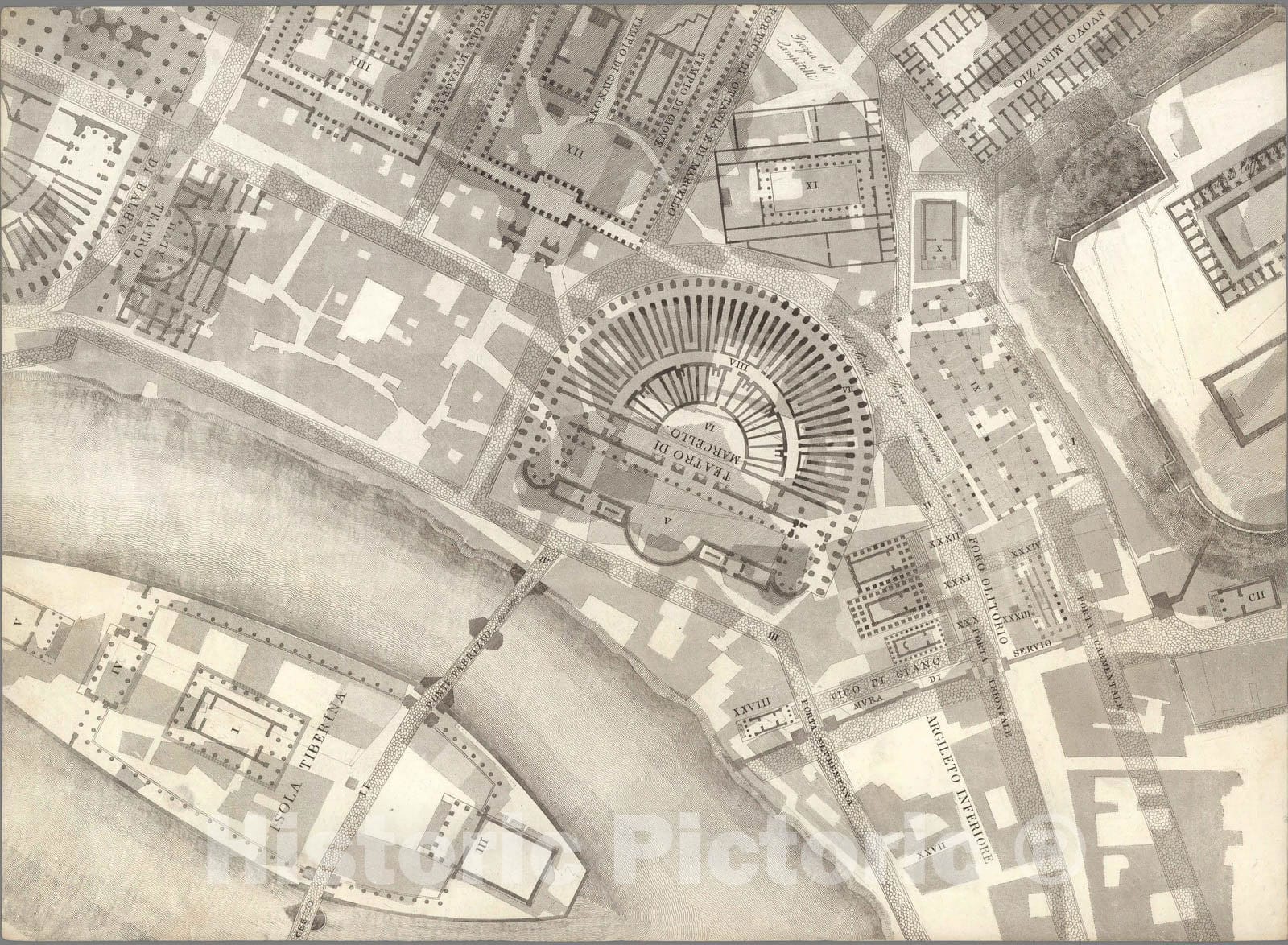 • .Historic Map : Italy , Rome (Italy), TAV VII .B Pianta topografica della parte media di Roma antica 1847 , Vintage Wall Art
